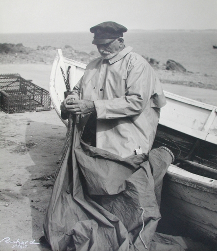 Ange Fromont et son doris (Première construction de Jules Toutain).Immatriculation