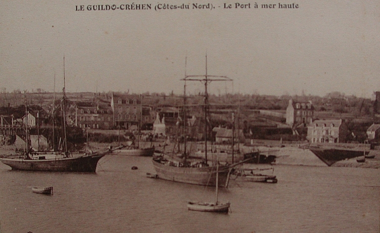 Vue générale du port du Guildo vers 1920 (Coll. Part.).Immatriculation