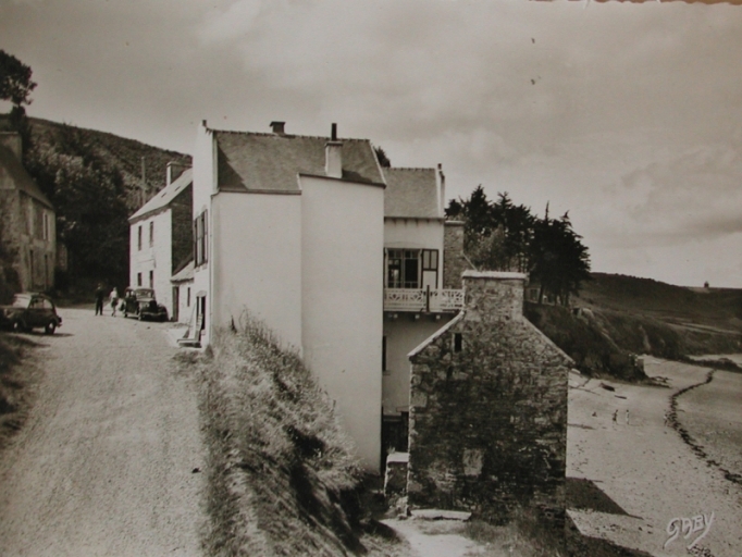 Vue des maisons du port, bordant la plage, en remontant l'ancienne Route du cidre, moitié 20e siècle (carte postale Gaby).Immatriculation