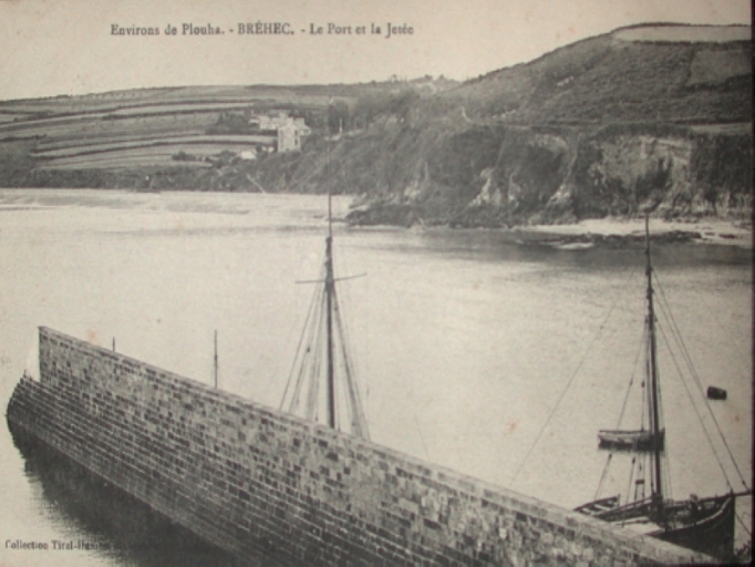 Carte postale de la digue-jetée du port de Bréhec (Barat, fin 19e siècle).Immatriculation