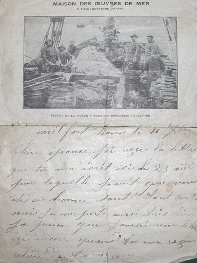 Lettre manuscrite d'un marin islandais à sa familleImmatriculation