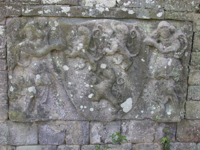 Pignon nord-est, détail des armoiries du château de Beaulieu.Immatriculation