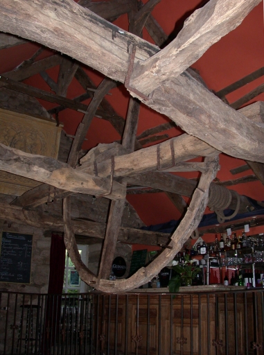 Vue intérieure du moulin : système servant à soulever les meules pour les rhabiller.Immatriculation