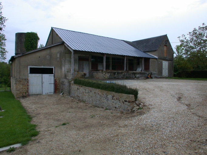Fromagerie, château d'eau (à l'arrière) et logement de contremaître à droite, vue générale sud.Immatriculation