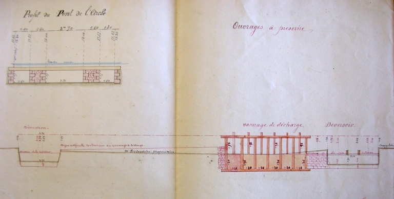 Vannage de décharge et déversoir : coupes (16 avril 1863).Immatriculation