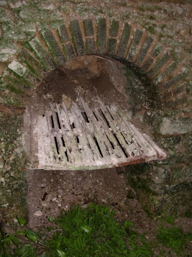 Détail d'un des ébraisoirs. La grille conserve des traces de chaux.Immatriculation