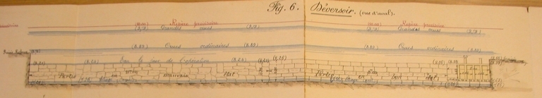 Elévation aval du déversoir (19 décembre 1891).Immatriculation