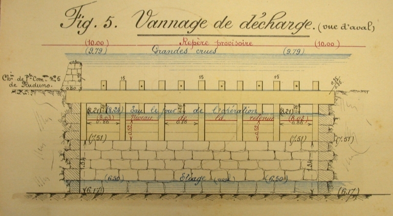 Elévation du vannage de décharge (19 décembre 1891).Immatriculation