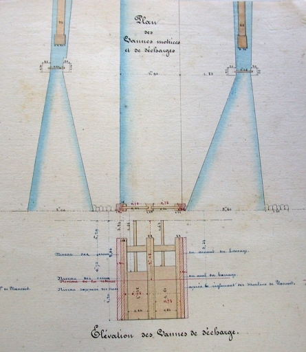 Vannes motrices et de décharge : plans et élévation (25 janvier 1859).Immatriculation