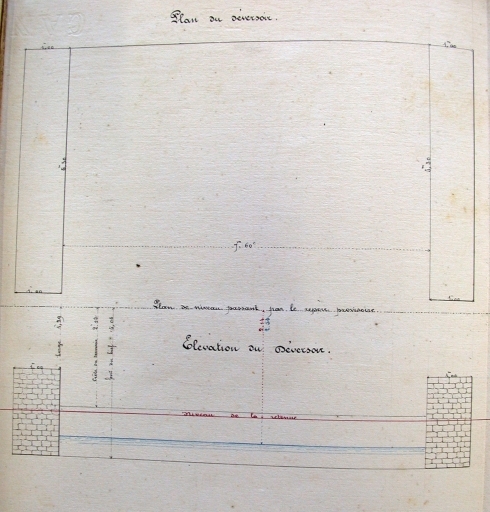 Déversoir : plan et élévation (25 janvier 1859).Immatriculation
