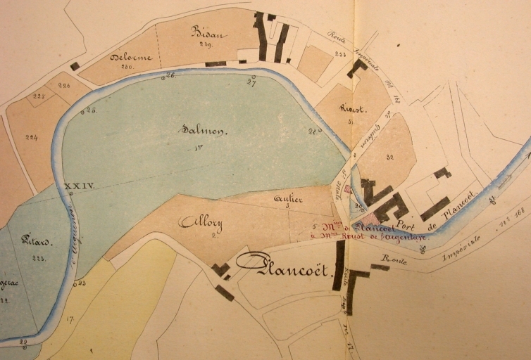 Plan de situation extrait du dossier de réglement d'eau des moulins de Plancoët (25 janvier 1859).Immatriculation