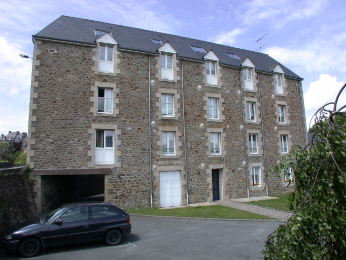 Moulin à farine de blé noir (Moulin Neuf), façade antérieure est. Réhabilité en immeuble à logements, il a pris le nom de Résidence de l'Arguenon.Immatriculation