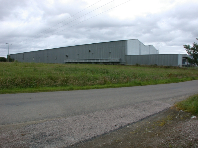 Façade latérale sud des ateliers de fabrication de charpente métallique édifiés dans les années 1970.Immatriculation