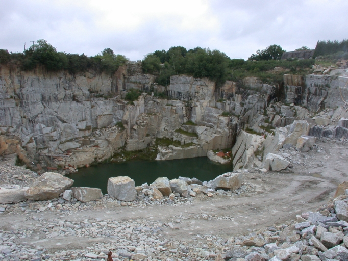 Carrière de granite Belgi, puis carrière et usine de taille de matériaux de construction Rioche, route départementale 766 (Bobital),