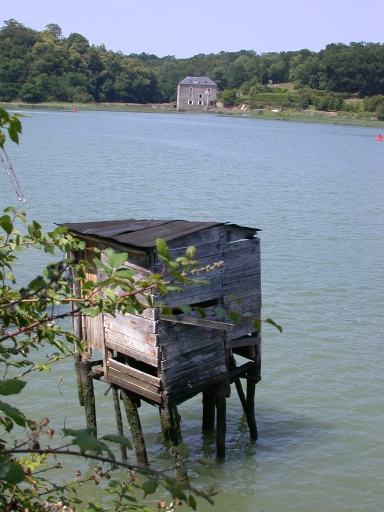 Vue générale Est prise de l'anse de Quincoubre. Au premier plan se situe une cabane de pêcheur autrefois dotée d'un carrelet et dont un certain nombre ponctue encore ces rives proches de l'écluse du Châtelier.Immatriculation