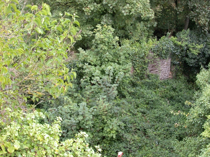 Ruines de l'ancienne remise envahie par la végétation.Immatriculation