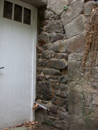 Détail des traces de l'ancienne voûte de service obstruée lors de la restauration des bâtiments en maison.Immatriculation