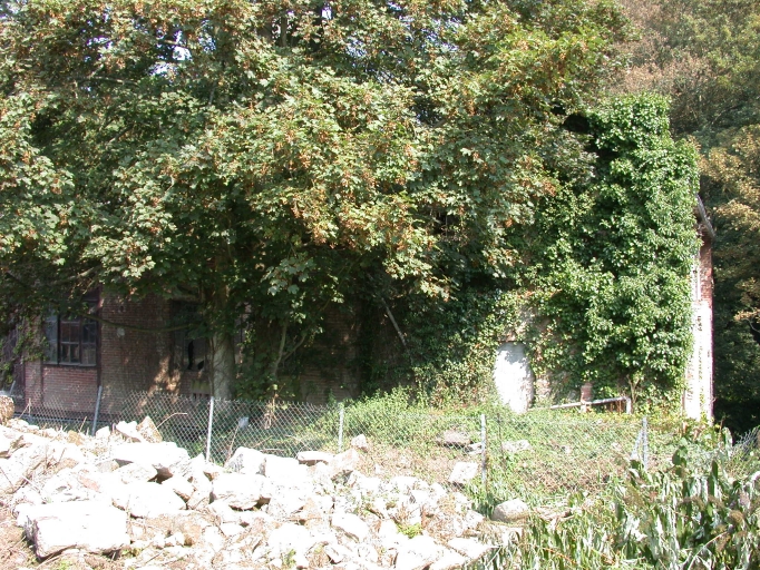 Extrémité sud de l'atelier envahi par la végétation.Immatriculation