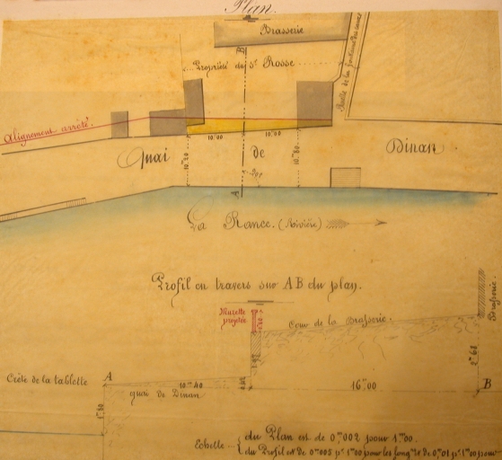 Plan général de la brasserie Rosse et Dibart dressé à l'occasion de la construction d'un petit mur en briques (4 janvier 1866).Immatriculation