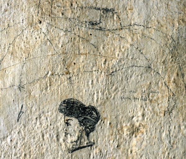Sous-sol, pièce ouest, cloison, face est, détailImmatriculation