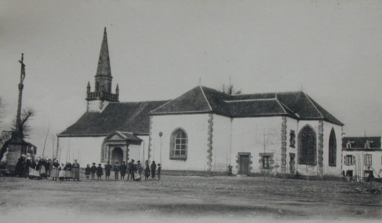 Clohars-Carnoët, église paroissiale Notre-Dame : vue générale sud-est. Carte postale ancienne (Collection particulière), reproduction de 2002Immatriculation
