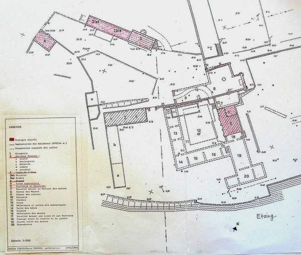 Extrait du plan de l'ensemble des bâtiments. Relevé de 1993 (Joëlle Furic et Oscar Marcou, architectes)Immatriculation