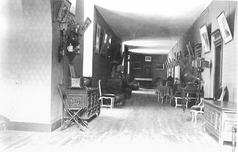 Château (détruit). Premier étage, couloir de distribution, vers 1900 (cl. Musée Trochu, 78550 Maulette)Immatriculation