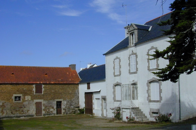 Kerlou. Grange (1874) à gauche et logis construit vers 1928 par l'entrepreneur Le CourantImmatriculation