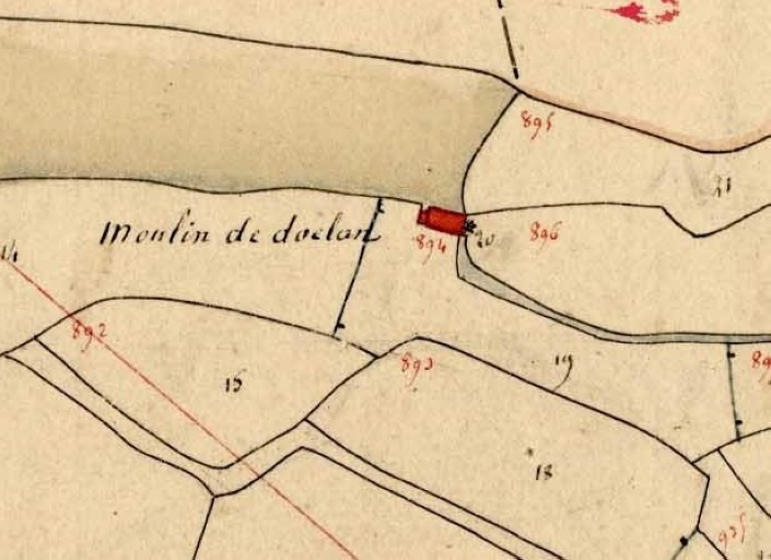 Moulin à marée de Doëlan (disparu). Extrait du cadastre de 1823, section E 1 (A.D. Finistère, 3 P 101)Immatriculation