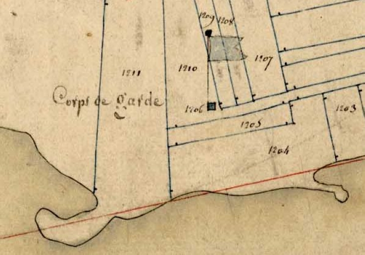 A l'est de Doëlan, emplacement d'un corps de garde (disparu). Extrait du cadastre de 1823, section E2 (A.D. Finistère, 3P101)Immatriculation