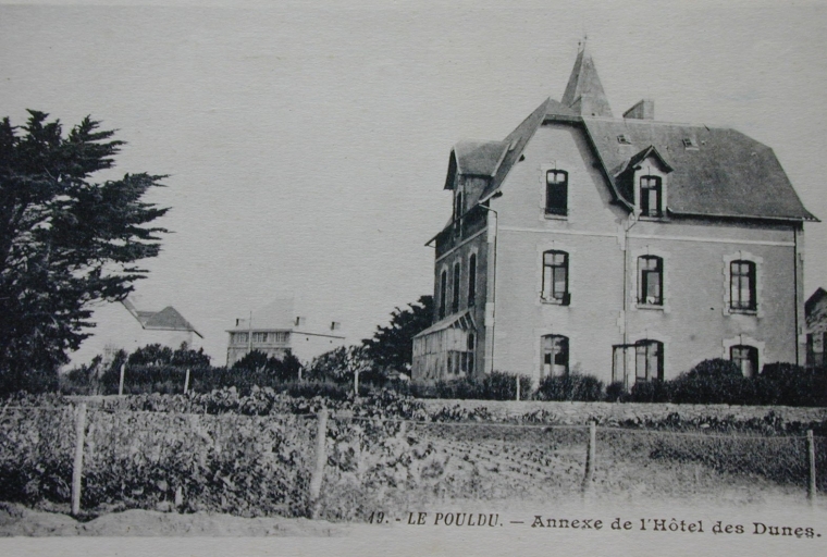 Les Grands Sables. Annexe de l'Hôtel des Dunes, élévation sud sur mer. Carte postale, vers 1900 (coll.part.)