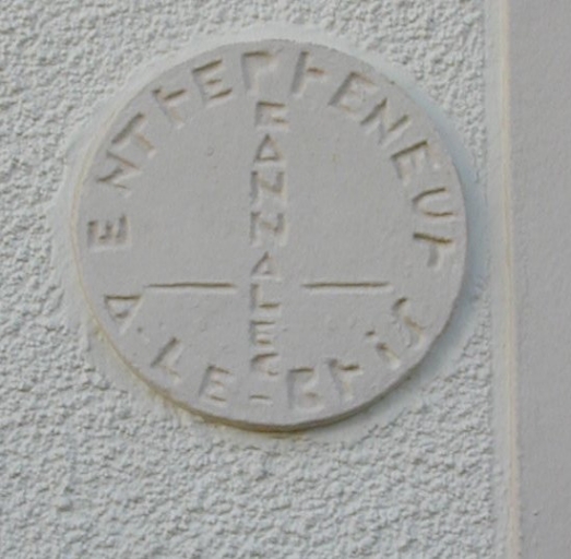 Les Grands Sables. 14, rue du Philosophe Alain. Maison dite Ty Jeannic, monogramme en ciment moulé
