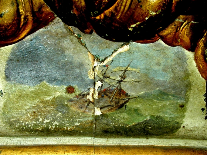 Détail : scène de naufrage peinte sur la baseImmatriculation