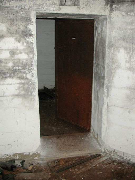 Vue intérieure : porte blindée de type 19P7 avec juda (état en 2002)Immatriculation