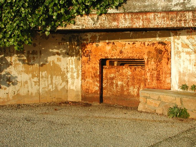 Vue de l'embrasure avec son volet blindé mobile (état en 2002)Immatriculation