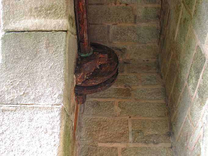 Vue de la poulie gauche du pont levis à chaîne et contre-poids (état en 2000)Immatriculation
