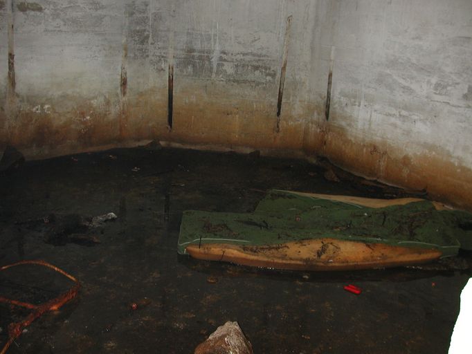 Vue de l'intérieur de l'abri souterrain en partie innondé de la pointe de Penn-al-Lann, 2001Immatriculation