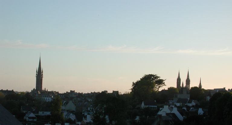 Vue des clochers de Saint-Pol-de-Léon depuis l'emplacement présumé du corps de garde du Champ de la RiveImmatriculation