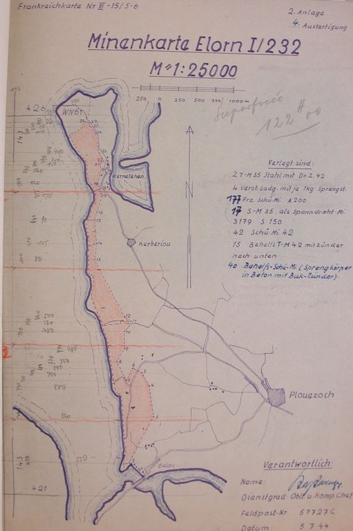 Plouézoch : plan des champs de mines de la pointe de Barnénez, 5 juillet 1944, sources Fort MontbareyImmatriculation