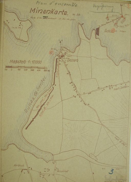 Santec : plan d'ensemble des champs de mines de la plage du Dossen, 1944, sources Fort MontbareyImmatriculation