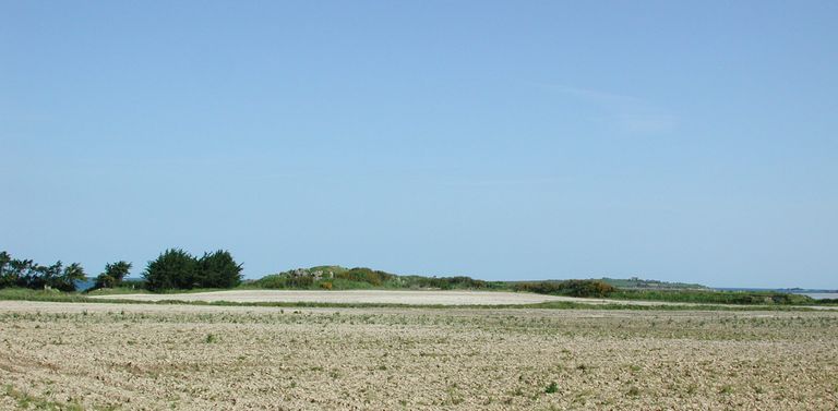 Vue générale de la pointe de Toul al Nouch [Toul an Ouch] depuis la terre (sud-est). Au premier plan, les champsImmatriculation