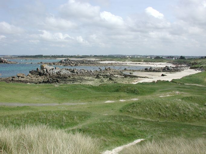 Cléder : vue de la côte à l'Est du corps de garde des Amiets. Sur cette portion de littoral, la côte se défend d'elle mêmeImmatriculation