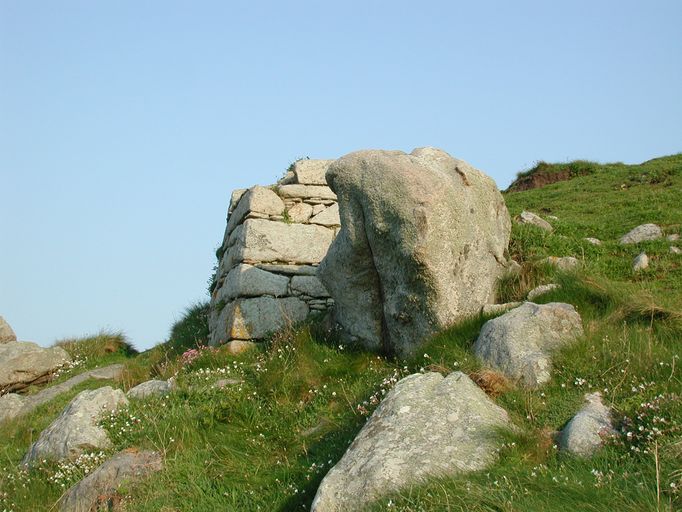 Batterie de côte (en arc de cercle) et four à boulets (détruit) de l'île de Sieck (Santec),