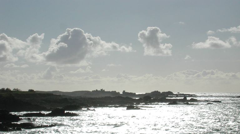 Vue de la côte à l'ouest de l'ensemble fortifié deTévenn Braz. Sur la pointe des Amiets à l'arrière plan se trouve le corps de garde des AmietsImmatriculation