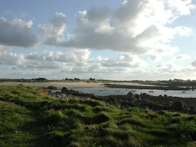 Cléder : vue de la plage de Kervaliou. L'accès à cette plage était défendu par des mines du côté de la mer. Du côté de la terre les chemins d'accès des goémoniers étaient barrés par des murs antichars en chicanesImmatriculation