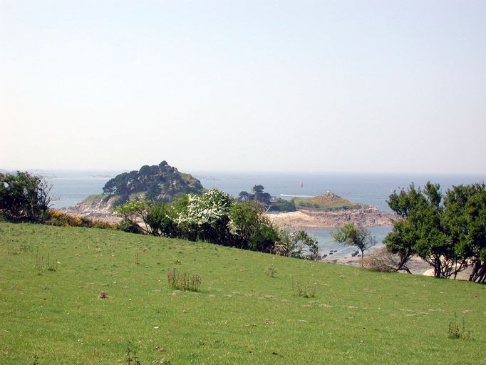 Vue de l'île Stérec depuis l'ensemble fortifié de PerrohenImmatriculation