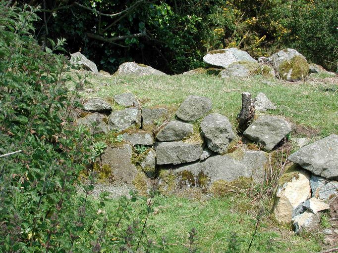 Vue du parapet en maçonnerie et du massif de terre depuis la barbette de la batterie de PerrohenImmatriculation