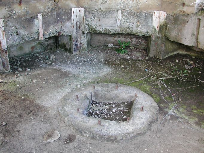 Vue du socle de la pièce de 50 mm de l'encuvement sous masque de la pointe de Roc'h LouëtImmatriculation