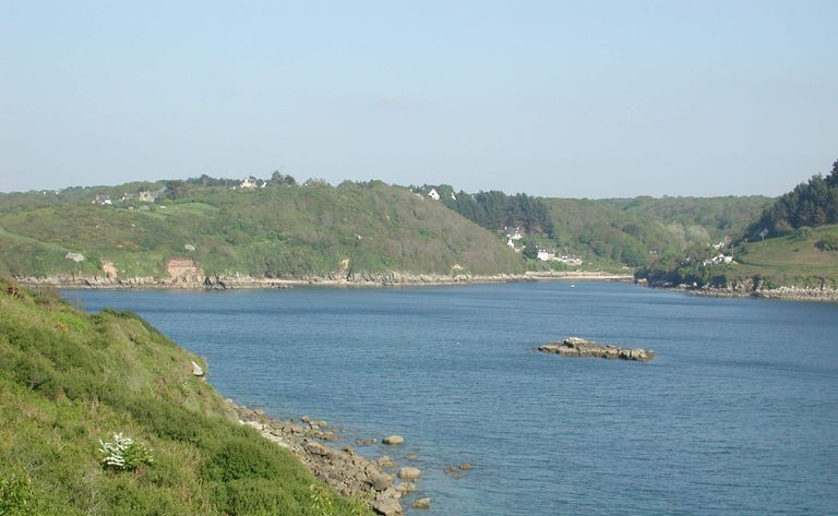 Lannion : vue de l'embouchure du Léguer depuis l'ensemble fortifié de la pointe Servel, sur la rive opposée : l'ensemble fortifié du Yaudet (commune de Ploulec'h)Immatriculation