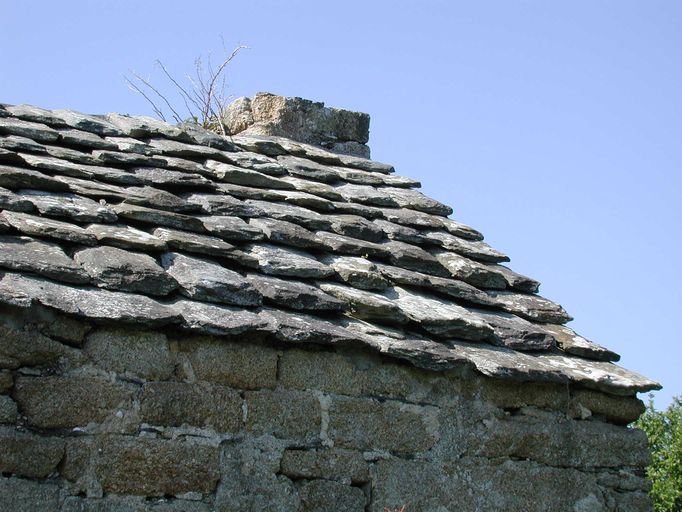 Vue de la couverture en dalles de granite et de la cheminée du corps de garde du YaudetImmatriculation